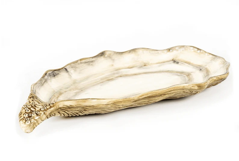 De Oldenhof oesterschaal is gemaakt van grijs aardewerk in de vorm van een oester.